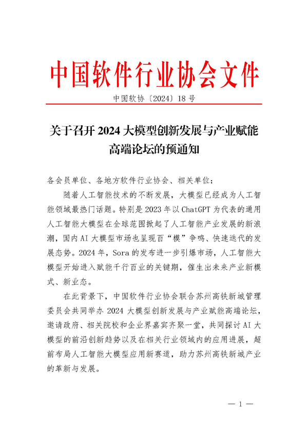 【软件】关于召开2024大模型创新发展与产业赋能高端论坛的预通知